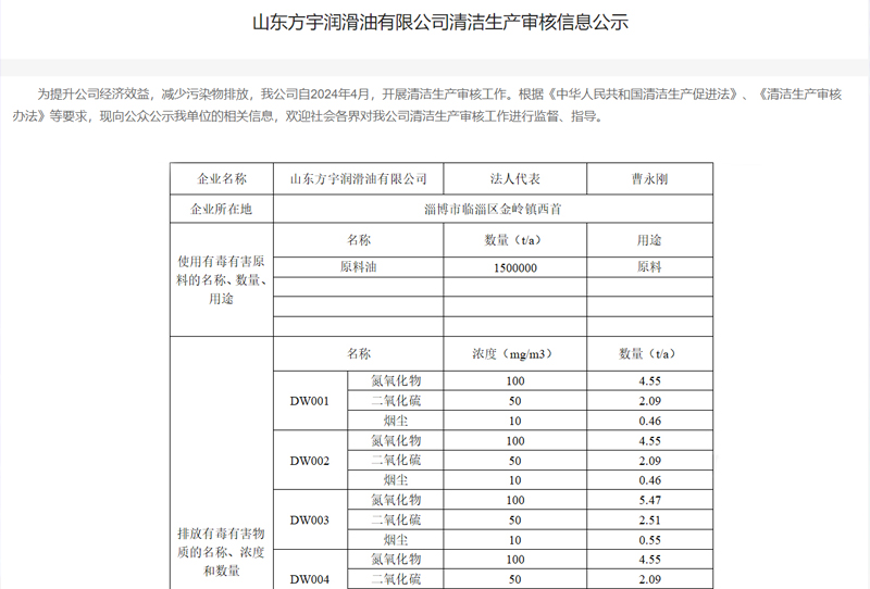 - 山東方宇潤滑油有限公司清潔生產(chǎn)審核信息公示